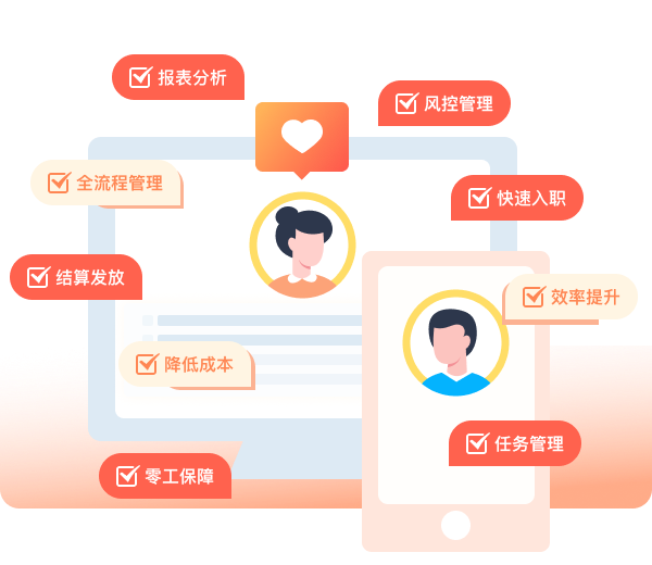 管理智能化, 精准管理以政策为依据,通过信息化能力打造真实场景的零工管理系统,零工人员标签化运营,帮助企业快速找到人,管好人,实现精准高效的零工管理 -